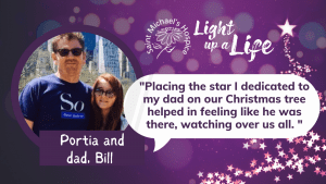 Portia Crewe, who has taken part in Light up a Life since 2015 while remembering her dad, Bill, shares her experience: